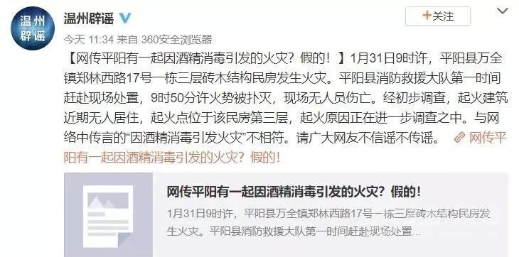 這起火災并非是在家使用酒精消毒引起的