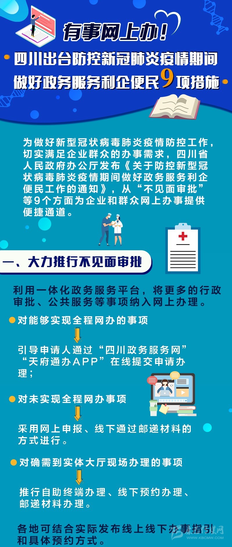 近日,四川省人民政府辦公廳印發(fā)了《關(guān)于防控新型冠狀病毒肺炎疫情期間做好政務(wù)服務(wù)利企便民工作的通知》。出臺眾多疫情防控期間利企便民舉措,明確具體辦理平臺和執(zhí)行流程,并將責(zé)任落實到各市(州)、縣(市、區(qū))政府,各部門機構(gòu)。