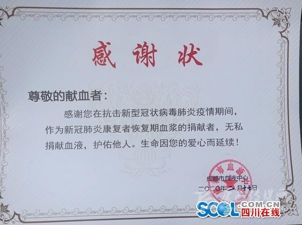 四川首次!成都兩名新冠肺炎康復(fù)者今日捐獻(xiàn)血漿