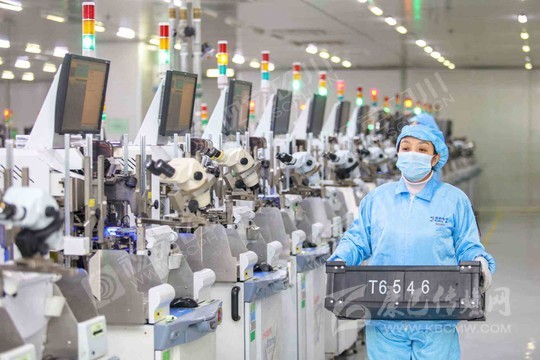 遂寧市經(jīng)開區(qū)藍(lán)彩電子智能信息化車間,工人正在生產(chǎn)線開足馬力加緊生產(chǎn)。