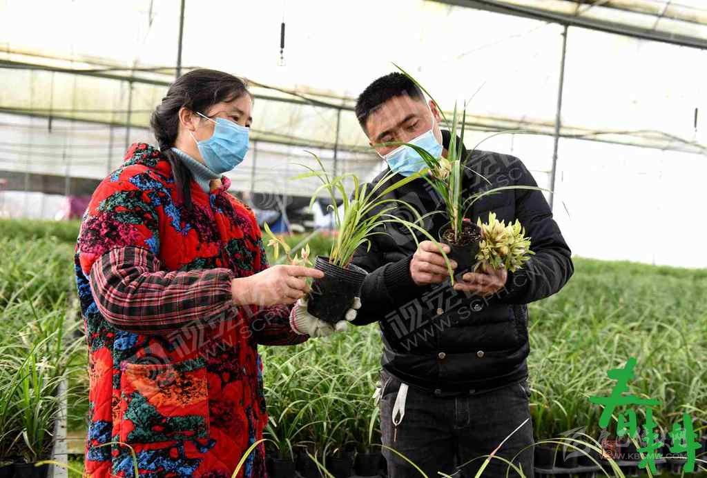 綿陽市安州區(qū)塔水鎮(zhèn)蘭草大棚內(nèi),工人們戴著口罩正在園內(nèi)下花、翻盆、除草,搶抓農(nóng)時,做到防疫春管兩不誤。