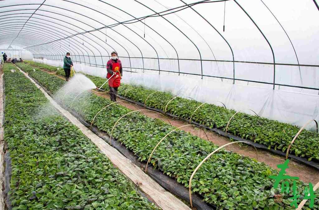 廣安市廣安區(qū)大龍鎮(zhèn)自力村菜農(nóng)在育苗大棚給苗床澆水。