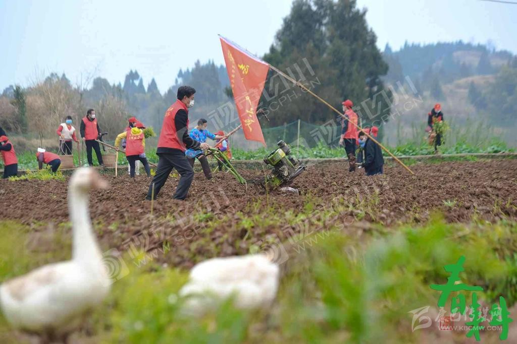 眉山市東坡區(qū)松江鎮(zhèn)山壩村村民在地里忙春耕春種。