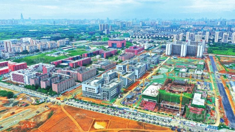8月3日,鳥瞰成都龍泉驛區(qū)成都大學(xué)校內(nèi)的在建大運(yùn)村。該項目21個新建單體中,除藝術(shù)中心外,其余20個新建單體主體結(jié)構(gòu)施工已完成,進(jìn)入裝飾裝修階段。
