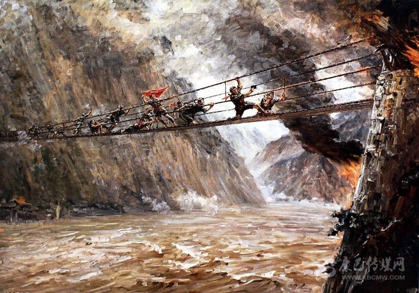 油畫《飛奪瀘定橋》,現(xiàn)藏于中國(guó)人民革命軍事博物館。