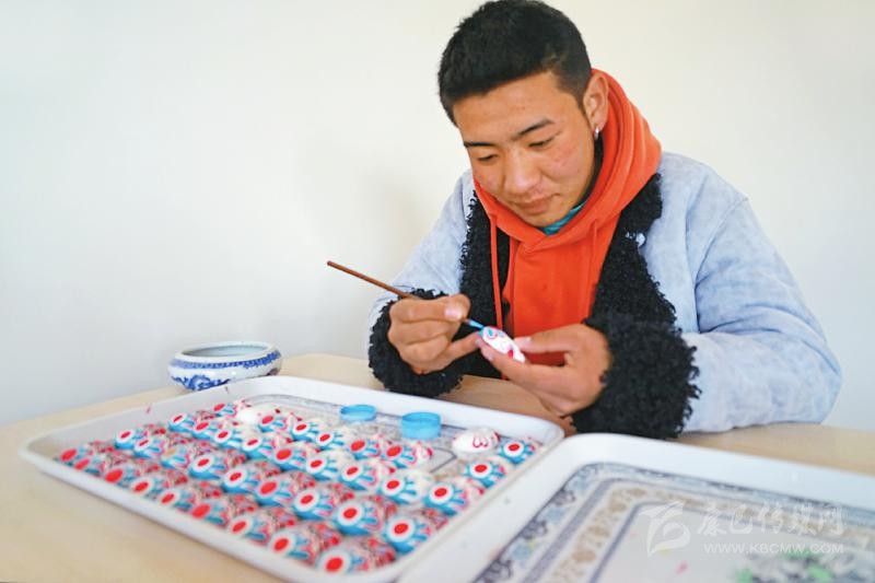 本著自主自愿的原則,教學(xué)班結(jié)束后,65名藏族青年主動(dòng)加入扶貧彩繪實(shí)訓(xùn)班,成為項(xiàng)目的第一批學(xué)員?!皩?shí)訓(xùn)期間不需要交任何費(fèi)用,還包吃住。我對(duì)畫京劇臉譜很有興趣,我們第一個(gè)月學(xué)習(xí)繪畫基本功,第二個(gè)月開始,根據(jù)成品質(zhì)量,就可以計(jì)件得酬勞,學(xué)習(xí)期間我每月能掙500多元?!壁雠f。
