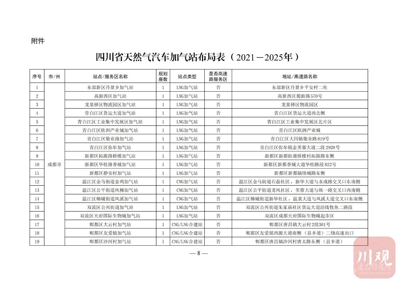 日前,四川省發(fā)展和改革委員會(huì)、四川省能源局印發(fā)《四川省天然氣汽車加氣站布局方案(2021-2025年)》(以下簡(jiǎn)稱《方案》)。《方案》提出到2025年,四川將規(guī)劃新建加氣站500座(含高速公路服務(wù)區(qū)141座),其中,CNG加氣站15座、LNG加氣站401座、L-CNG加氣站8座、CNG/LNG合建站76座。