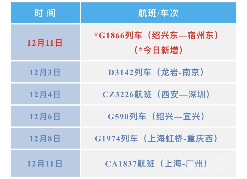 搭乘過以下交通工具的來(返)川人員,第一時間主動向社區(qū)或居(村)委會、單位或入住酒店報備旅居史,配合做好相關(guān)防控工作。