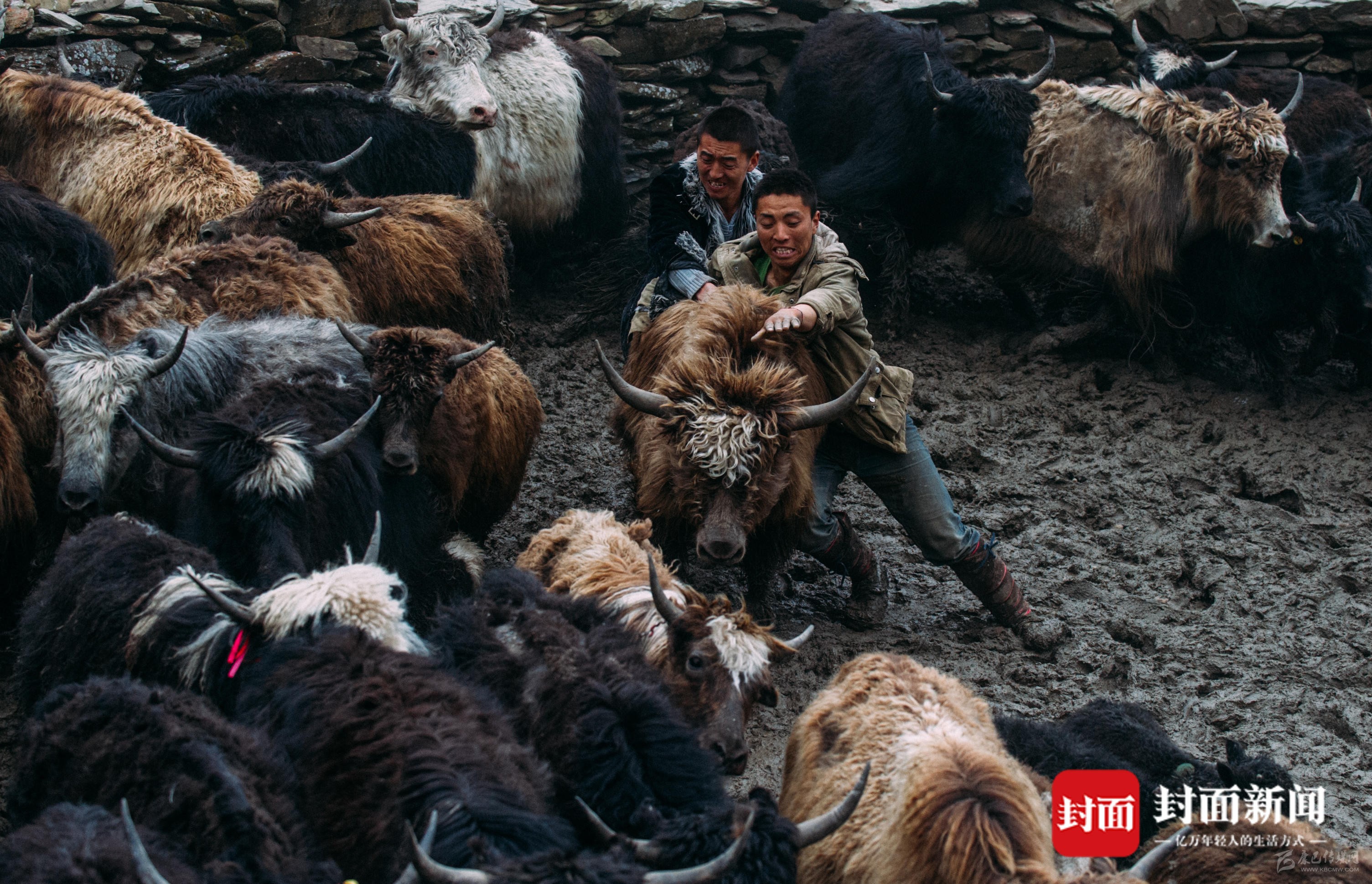 磽磧藏族鄉(xiāng)村民將散養(yǎng)的牦牛趕下山