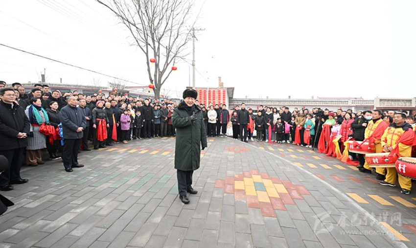 村文化廣場上十分熱鬧,村民們打起威風鑼鼓、扭起秧歌歡慶佳節(jié)??吹娇倳泚砹?,人們高興地歡呼起來。習近平對鄉(xiāng)親們說,我們黨的根本宗旨就是為人民群眾辦好事,為人民群眾幸福生活拼搏、奉獻、服務。我們?nèi)缙诖蜈A了脫貧攻堅戰(zhàn),如期實現(xiàn)了全面建成小康社會目標,現(xiàn)在踏上了全面建設社會主義現(xiàn)代化國家新征程。建設現(xiàn)代化國家離不開農(nóng)業(yè)農(nóng)村現(xiàn)代化,要繼續(xù)鞏固脫貧攻堅成果,扎實推進鄉(xiāng)村振興,讓群眾生活更上一層樓,在推進農(nóng)業(yè)農(nóng)村現(xiàn)代化中越走越有奔頭。