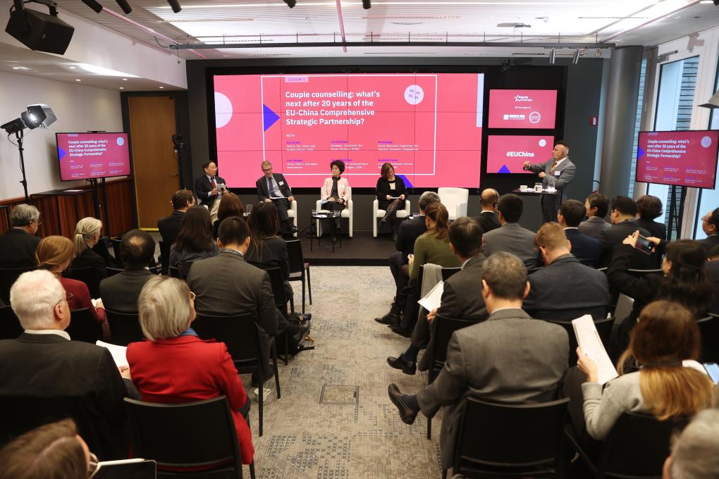 這是11月23日在比利時布魯塞爾拍攝的第十一屆中歐論壇現場。新華社記者趙丁喆 攝