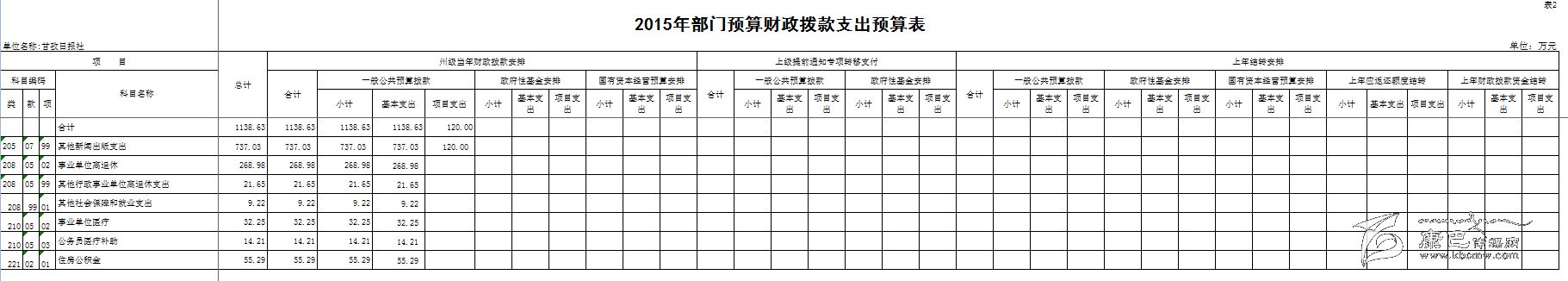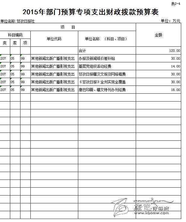 甘孜日報社2015年預(yù)算