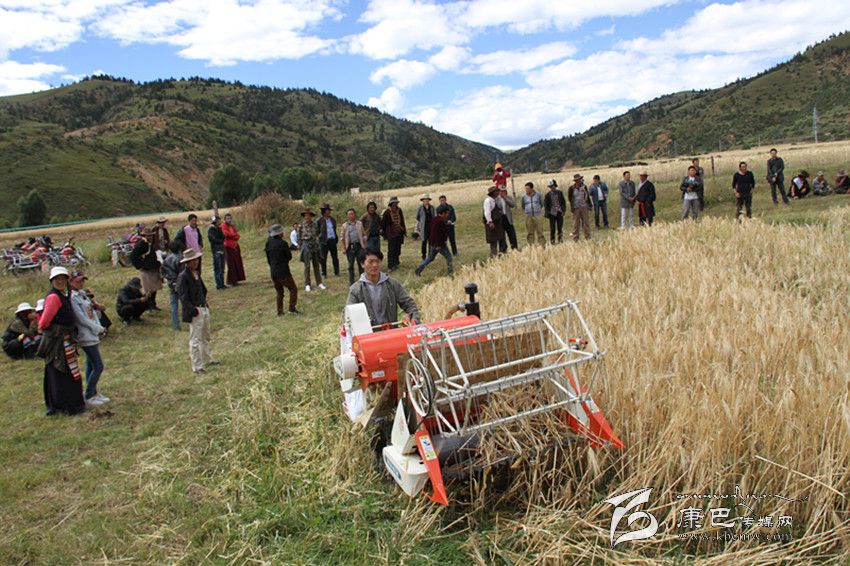 小型聯(lián)合收割機(jī)開進(jìn)理塘高海拔鄉(xiāng)村