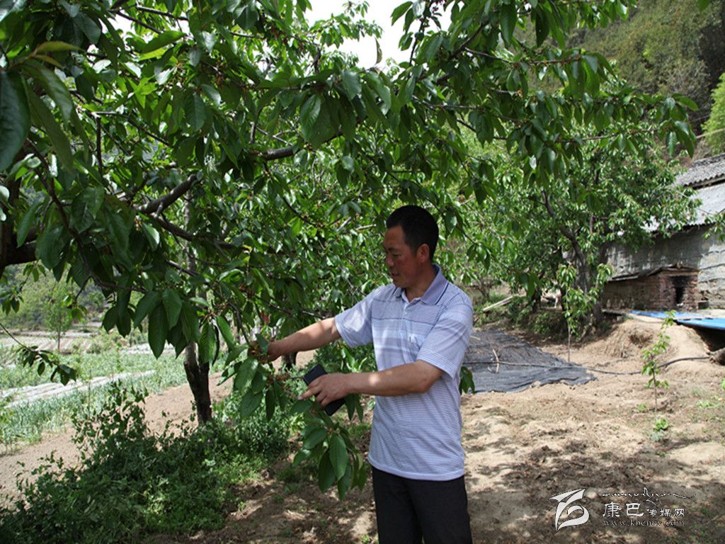 樹林邊是嗡嗡亂飛的蜜蜂,院子下方又是另一番景象。高祥英指著已經(jīng)碩果滿枝的9棵大櫻桃樹對(duì)記者說(shuō),如果當(dāng)年不砍掉8棵樹,這片大櫻桃樹現(xiàn)在的數(shù)量應(yīng)該為17棵。提起砍樹的事,高祥英顯得有些后悔。但他話鋒一轉(zhuǎn)說(shuō),正是當(dāng)年那次砍果樹的經(jīng)歷,才讓他走上了發(fā)展種植業(yè)的路。