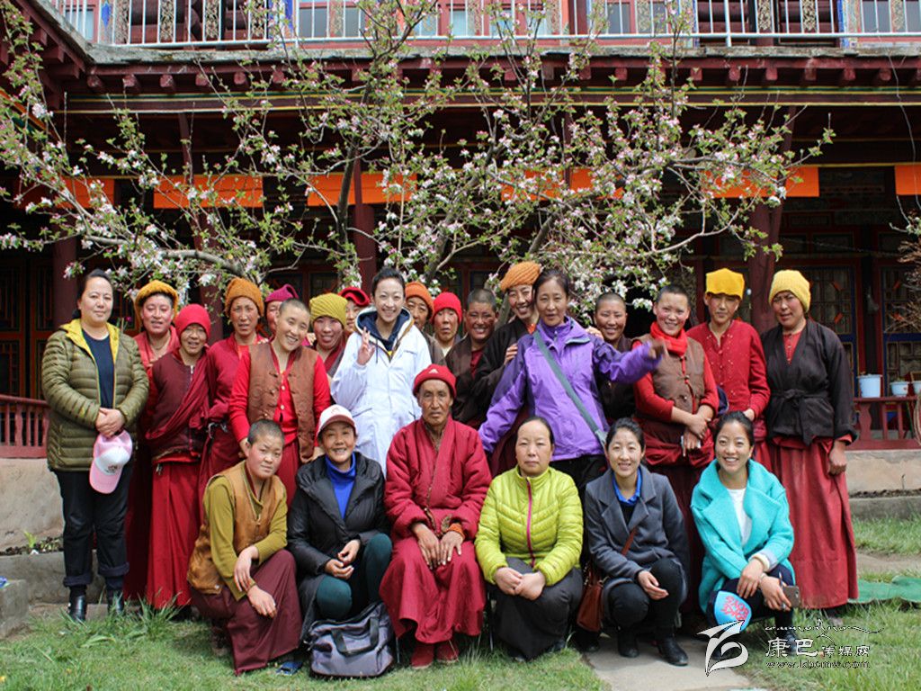 5月10日早上,空氣格外清新,筆者隨甘孜縣“姐妹手拉手、健康心連心”關(guān)愛活動(dòng)小組一行從縣城前往那蒼寺。車行半小時(shí)后,來到了覺姆們的清修之地,寺院環(huán)境幽雅,陣陣花香沁人心脾。覺姆們都高興地走出寺廟歡迎“姐妹”的到來。