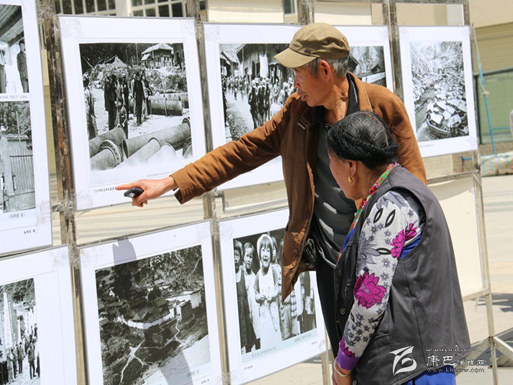 近日,由康定市委宣傳部、甘孜州攝影家協(xié)會(huì)、康定市文化旅游局和康定市文化藝術(shù)界聯(lián)合會(huì)聯(lián)辦的《康定的足跡——大型歷史文獻(xiàn)圖片展》在該市姑咱鎮(zhèn)舉辦。圖為市民正在觀看老照片。(記者 宋志勇 攝影報(bào)道)