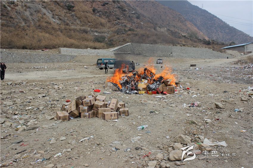 本網(wǎng)訊(謝靜 尼胡克布文/圖)3月15日,瀘定縣食品藥品工商質(zhì)量監(jiān)督管理局聯(lián)合司法局、發(fā)改局、農(nóng)牧局等相關(guān)部門(mén)以及煙草、桑吉卓瑪、瀘灃超市、電信等企業(yè),以“3.15”活動(dòng)為契機(jī),深入開(kāi)展“新消費(fèi),我做主”年主題宣傳活動(dòng),現(xiàn)場(chǎng)接待了各類(lèi)咨詢150余人(次),發(fā)放各種宣傳材料2000余份。宣傳活動(dòng)結(jié)束后,縣食品藥品工商質(zhì)量監(jiān)督管理局將近期收繳的價(jià)值9.1余萬(wàn)元的不合格食品、侵犯商標(biāo)的商品,運(yùn)送到垃圾場(chǎng)進(jìn)行了焚毀。圖為焚燒現(xiàn)場(chǎng)?! ?br />