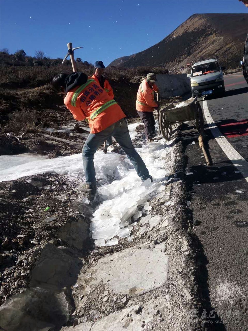 本網(wǎng)訊(孔邑 文/圖)2016年12月31日,稻城公路分局組織公路應(yīng)急搶險隊(duì)鏟除道路冰凍積雪,消除安全隱患,確保干線公路安全暢通。