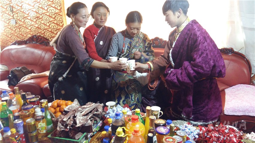 根秋卓瑪一家是俄多瑪鄉(xiāng)的村民,初一一大早,根秋卓瑪就穿上節(jié)日的盛裝。“今天我們要把年貨擺放出來,等親戚朋友祈福回來,我們一家就會圍坐在一起,拉著家常、吃著美食、唱著山歌,高高興興歡度藏歷新年?!备镒楷斦f。