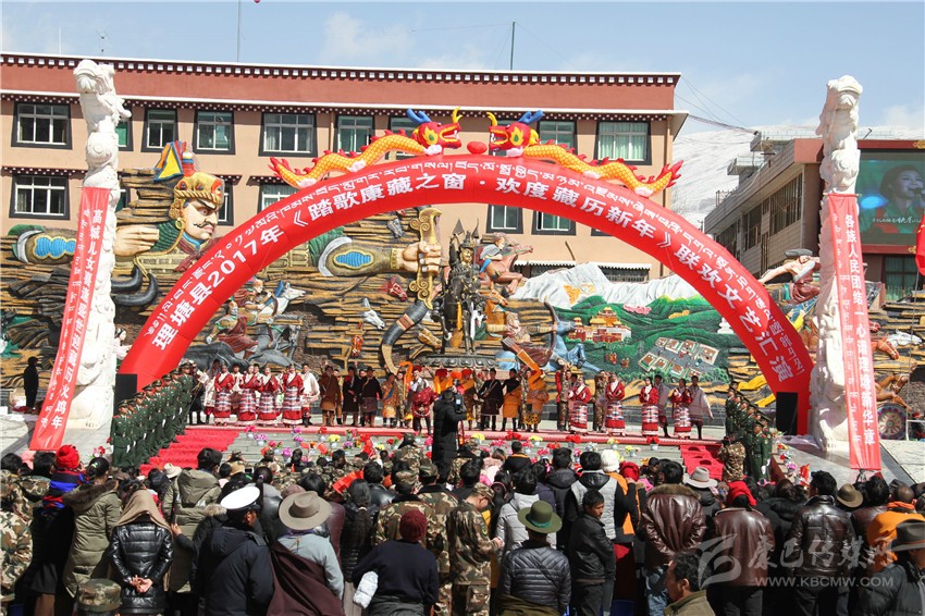 瑞雪初霽,踏歌迎春,2月28日,藏歷火雞新年初二,理塘縣格薩爾廣場上隆重舉行2017年“踏歌康藏之窗·歡度藏歷新年”文藝匯演,本次活動由縣委、縣人民政府主辦,縣委宣傳部、武警部隊、甲洼民間藏戲藝術(shù)團(tuán)等單位承辦。