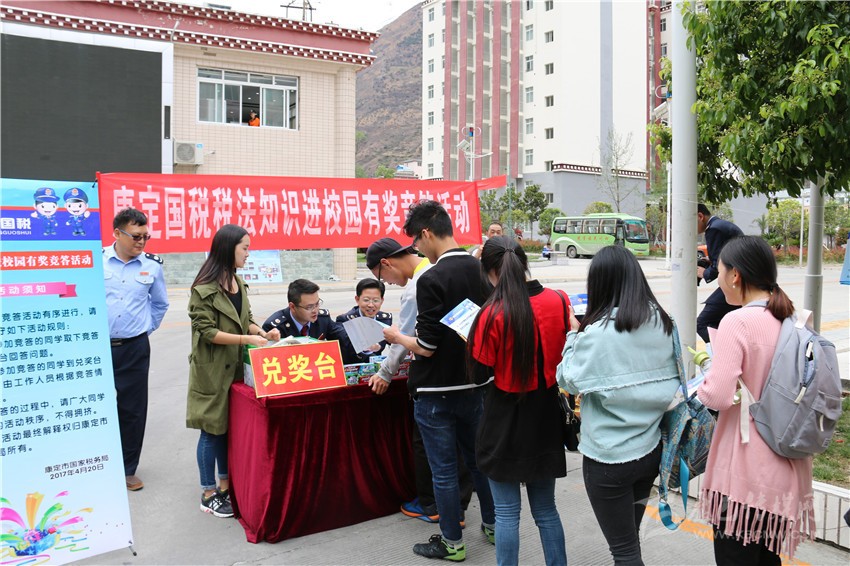 本網(wǎng)訊(吳海波 記者 張嗥)購物時(shí)商家不給發(fā)票,可以打哪個(gè)電話進(jìn)行投訴?增值稅納稅人分為哪幾類?”這一系列與生活息息相關(guān)的稅法知識(shí)有獎(jiǎng)答題,引來了眾多四川民族學(xué)院同學(xué)的熱情參與。420 日,康定市稅法宣傳月活動(dòng)持續(xù)升溫,稅法宣傳首次走進(jìn)高等院校。