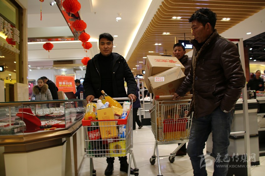 看著單子上還有一大堆年貨沒有買。扎西扳著指頭計算:“還有肉、雞、鴨,這些沒買,再跑兩次都可能買不完?!薄澳?號多開個車跑一趟,一次性買完,好安安心心過年?!?/p>