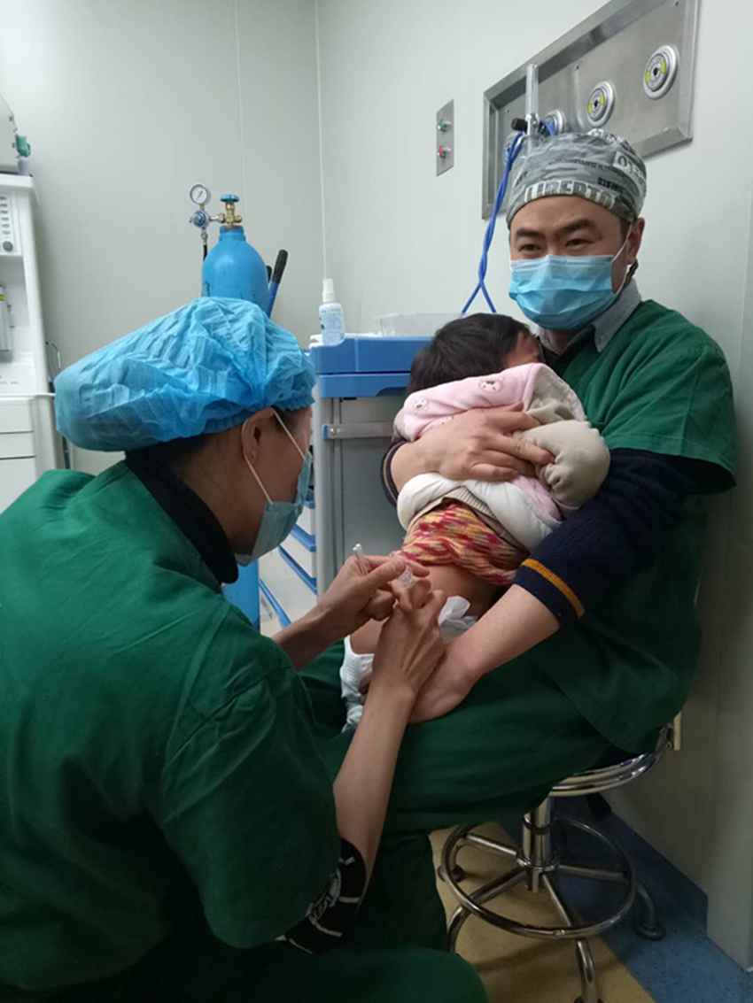 面對高海拔的情況和患兒的病況,陳勇醫(yī)生施展全身解數(shù),充分利豐富的經(jīng)驗和精湛的技術(shù),歷時1小時,順利完成了麻醉手術(shù),術(shù)中患兒生命體征平穩(wěn)。