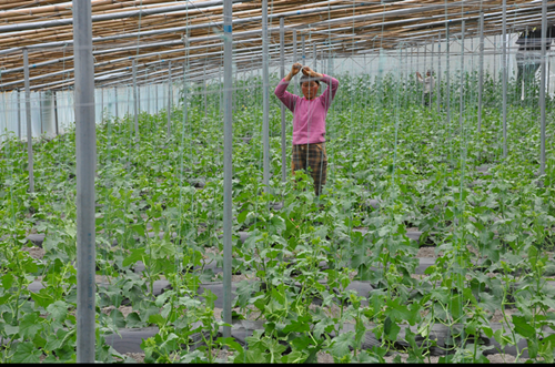 為進一步做大做強蔬菜產業(yè),瀘定縣穩(wěn)步實施《高半山特色生態(tài)農業(yè)發(fā)展規(guī)劃》,優(yōu)質魔芋、高產核桃、特色水果播面分別達11000畝、9000畝、7120畝;建成現(xiàn)代農業(yè)產業(yè)基地8.65萬畝、高產高效創(chuàng)建基地2.4萬畝,蔬菜種植面積達2.5萬畝,蔬菜基地灌溉保證率達90%,蔬菜良種、基地綠色防控覆蓋率均達100%。圖為德威鄉(xiāng)磨子溝村村民在蔬菜大棚內忙碌。(尼胡克布 攝影報道)