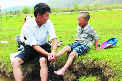 近日,筆者在仁果下鄉(xiāng)采訪時(shí),看到一個(gè)年輕人正在給孩子洗腳。“這個(gè)孩子是你的親戚嗎?”“不是哦,他們都是我的學(xué)生,因?yàn)楹⒆犹×?,就幫他們洗腳,希望孩子從小養(yǎng)成講衛(wèi)生的好習(xí)慣。”看著筆者不解的目光,他解釋說。