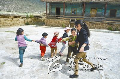 鄧珠志瑪與學(xué)生一起做游戲。