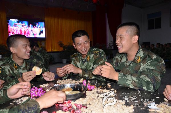 警營俱樂部內(nèi)文藝節(jié)目激情上演,觀眾是清一色的“橄欖綠”,觀眾們掌聲沸騰,臺球、棋牌愛好者對戰(zhàn)廝殺,酣暢淋漓。室外的比賽正激烈進(jìn)行,新兵們沉浸在歡樂的海洋里。為讓初上高原的新戰(zhàn)士們在警營過一個(gè)愉快溫暖的中秋節(jié),教導(dǎo)隊(duì)領(lǐng)導(dǎo)可謂煞費(fèi)苦心,他們買來月餅、水果等精心安排節(jié)日餐桌,并傾心打造節(jié)日“文化大餐”,讓第一次離家的新兵們感受到部隊(duì)大家庭的溫暖。