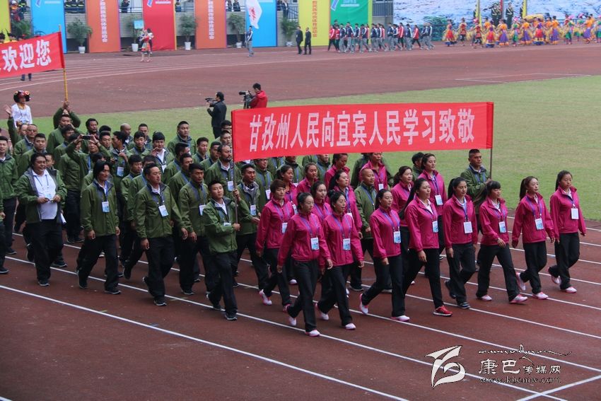 開幕式上,作為下一屆民運會的承辦方,我州代表團打出了“四年以后甘孜見,甘孜人民歡迎你”的橫幅。