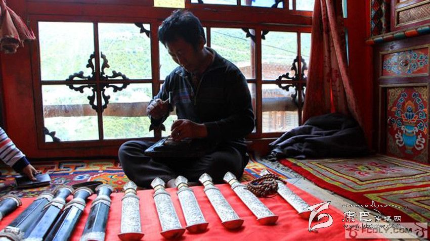 還沒走進(jìn)白玉縣河坡鄉(xiāng)根秋丹貞家,已傳來叮叮當(dāng)當(dāng)?shù)那么蚵暋?ldquo;我們家祖祖輩輩都從事藏族手工技藝,從以前的兵器到現(xiàn)在的裝飾品等,都是我們純手工制造出來的。”根秋丹貞是“白玉河坡藏族手工技藝”代表性傳承人,每年全國跑訂單,如今已接到了2016年,價值100多萬元。