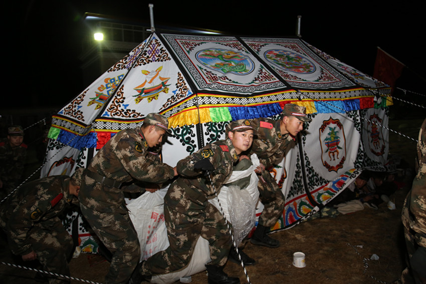 “快!快!搭建帳篷,抓緊轉(zhuǎn)移受災群眾。”、“小心!小心!不要慌,慢慢來。”……救援現(xiàn)場,參戰(zhàn)官兵爭分奪秒搜救人員,轉(zhuǎn)移安置受災群眾,趁著夜色熱火朝天地搭起救災帳篷。大家齊心協(xié)力,有的搬運帳篷,有的組裝帳篷部件,有的拉緊繩子,有的打地樁,有的支桿撐桿……經(jīng)過一線官兵連續(xù)奮戰(zhàn),共營救11名輕傷群眾,轉(zhuǎn)移群眾200余人,轉(zhuǎn)運棉被1040套,搭建帳篷195頂,發(fā)放礦泉水、方便面、壓縮餅干、罐桶等食品百余件,受災較重的木雅祖慶小學近1828名師生已得到妥善安置,支隊派出的醫(yī)療小分隊已展開醫(yī)療救助和衛(wèi)生消毒等工作。