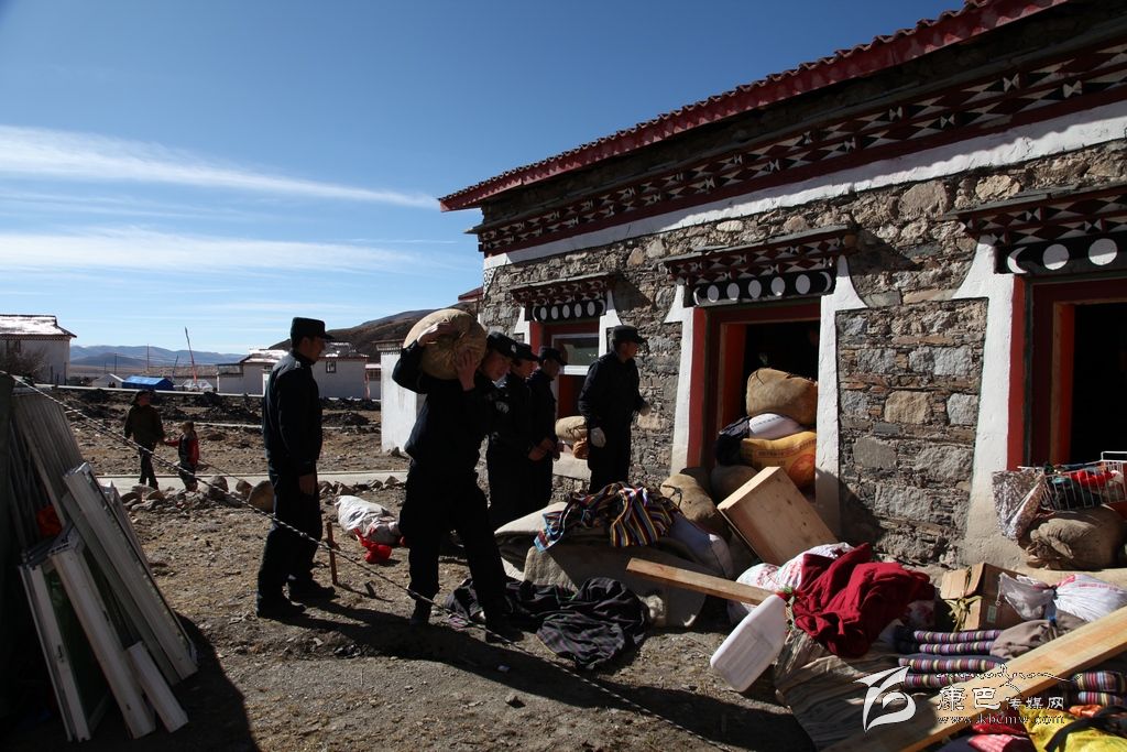 26日一大早,記者驅車趕往塔公江巴村采訪,在江巴村一戶受災群眾家院壩內,看到了一群熟悉的聲影,他們正在幫村民巴扎轉移糧食。村民巴扎家堆放糧食的房屋外墻受地震影響裂開了幾到明顯的口子,磚瓦散落一地。主人家非常擔心房子垮了將糧食掩埋,這是他辛苦了一年的勞動成果,更是一家人過冬的口糧,正當巴扎心焦如何將這兩千余斤糧食如何轉移到安全地帶時,他們出現(xiàn)了。當他們了解到巴扎想盡快把糧食和其他物品轉移到安全地點時,他們二話不說,簡單分工后,馬上就忙開了。他們扛的扛、拉的拉、背的背、抬的抬……很快就將糧食以及其他零散物品轉移到巴扎家的安全地帶??吹竭@一切,一旁的巴扎對他們翹起了大拇指用很不流利的漢語說到:實在太感謝你們了,卡卓、卡卓……