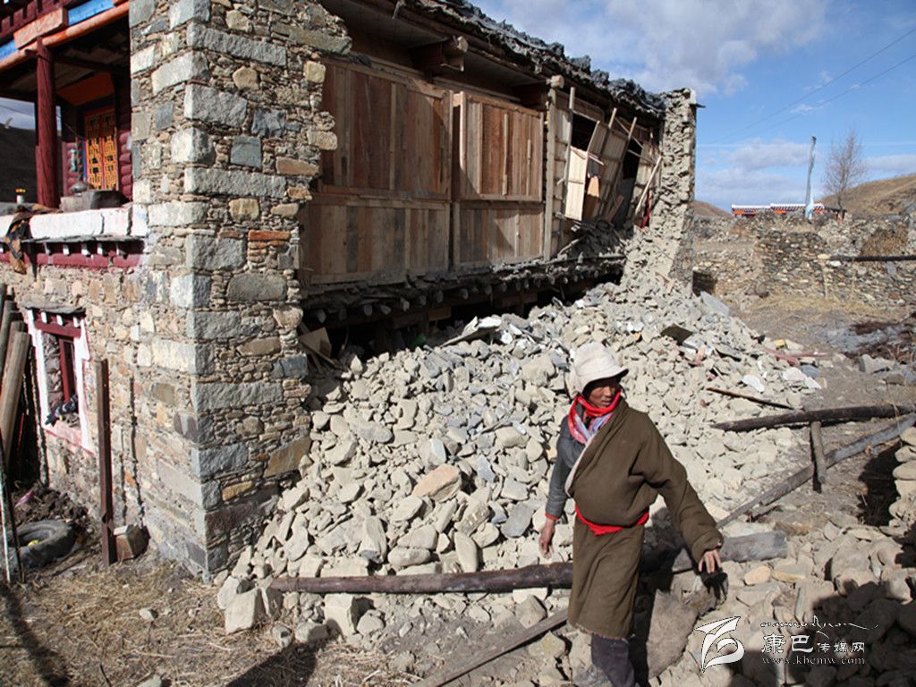 該村不少舊式藏居已經(jīng)徹底倒塌,瓦礫遍地。正在幫助村民搭建帳篷的中古村包村干部劉怡說,全村共189戶村民,125戶有房,受災(zāi)110棟房,其中五組受災(zāi)最嚴重,31戶房屋倒塌。這個村當(dāng)年沒有被納入牧民定居建設(shè)。