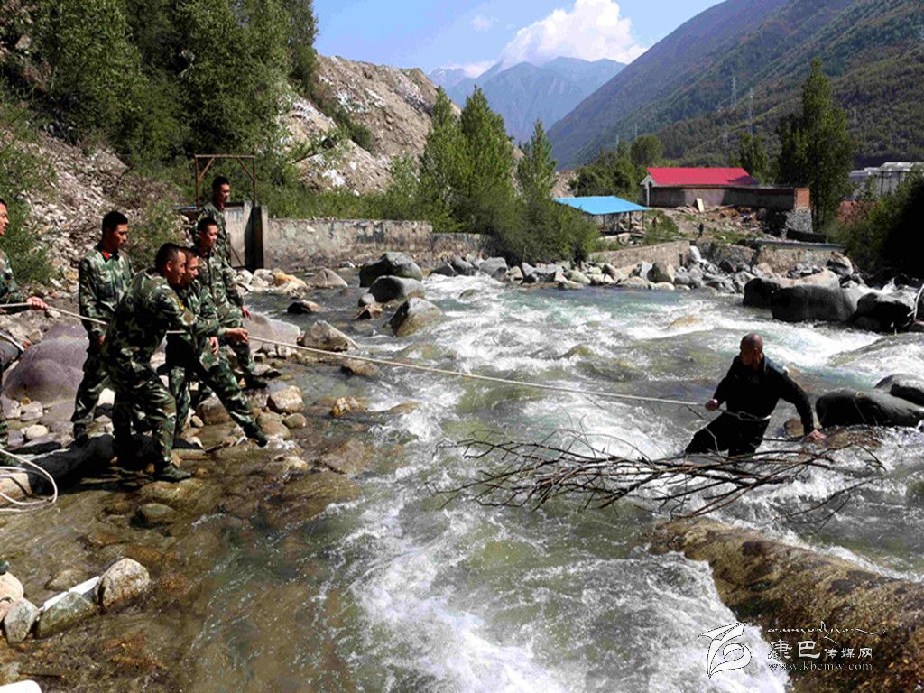 小尚一邊安慰受困男子,一邊用對講機(jī)向中隊(duì)值班員報告,請求援助。5分鐘后,中隊(duì)值班員帶領(lǐng)幾名班長骨干攜帶救援裝備緊急趕至岸邊,展開救援。五月的康定正值雨季,河水湍急、冰冷刺骨,加之河床亂石林立,官兵涉河接近受困男子困難。負(fù)責(zé)一線救援的龔財(cái)嵐排長決定利用河中大石采取短距離定向移動的方法,拋出攀登繩,綁在老鄉(xiāng)腰上確保老鄉(xiāng)不被河水沖走。經(jīng)過近10分鐘緊急營救,受困老鄉(xiāng)被成功營救上岸。由于老鄉(xiāng)渾身冰涼且手上有傷,救援官兵決定將老鄉(xiāng)攙扶至營區(qū),由衛(wèi)生員對身體進(jìn)行簡單檢查,并對其傷口進(jìn)行處理包扎。