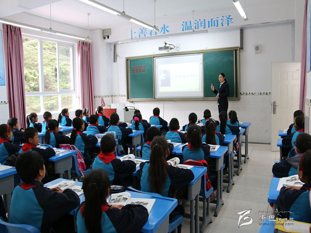 丹巴縣水子片區(qū)寄宿制學(xué)校正在使用多媒體教學(xué)。