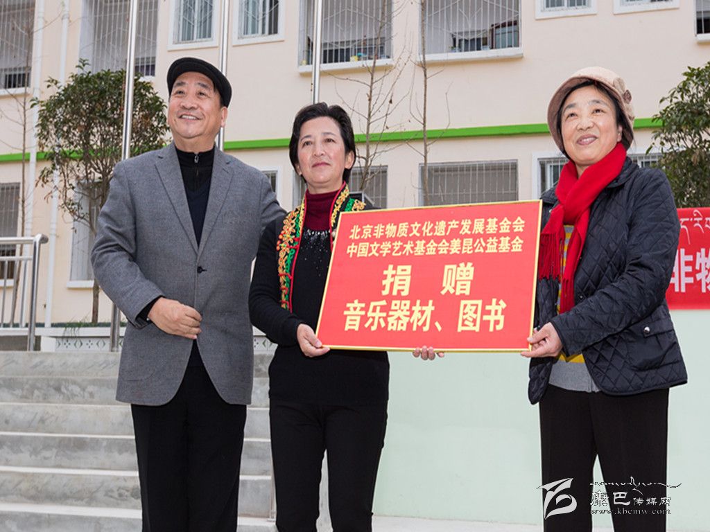 日前,全國政協(xié)委員、北京非物質(zhì)文化遺產(chǎn)發(fā)展基金會形象大使、中國文學(xué)藝術(shù)基金會副理事長、中國文藝志愿者協(xié)會主席姜昆(左)和北京非物質(zhì)文化遺產(chǎn)發(fā)展基金會第一副理事長史秋秋(右),率團來我州援助學(xué)校音樂器材和圖書。圖為瀘定縣貢嘎山小學(xué)李英校長(中)代表我州受贈學(xué)校接收贈品。(馮光福 攝影報道)