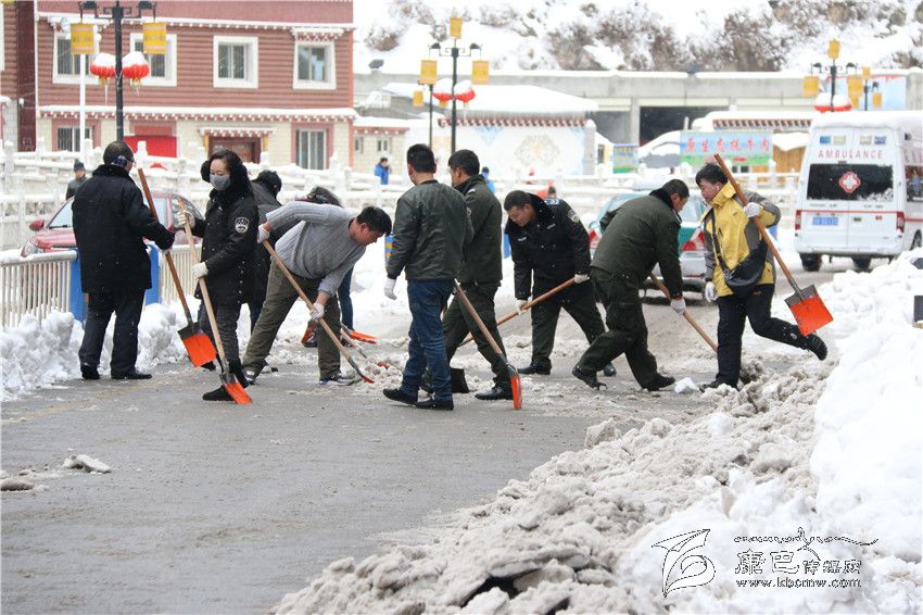從22日上午起,記者在康定城區(qū)大街小巷看到,駐州部隊官兵以及部分單位職工緊急行動起來,清掃積雪。根據(jù)州委、州政府的安排,州直屬機(jī)關(guān)工委也于22日向州級部門、省屬單位各基層黨組織發(fā)出緊急通知,并逐一劃分責(zé)任片區(qū),組織干部職工集中清理辦公區(qū)、住宿區(qū)、街道積雪,確保道路安全暢通。 按照劃分的責(zé)任片區(qū),州級機(jī)關(guān)行動迅速,到處可以看見干部職工揮動鐵鏟除雪的忙碌身影。23日上午10點(diǎn)過,記者看到從藏族小學(xué)到州委黨校的路段上,州委黨校和州檔案局的干部職工正在清除積雪。“大雪影響了這段路上居民的出行,積雪很深,給清掃帶來極大困難。州直機(jī)關(guān)工委號召機(jī)關(guān)單位干部職工積極行動起來清理積雪,這是與人方便,也是與自己方便。積雪清掃干凈后,走在路上不需要擔(dān)心被滑倒。”州委黨校教師扎西說。