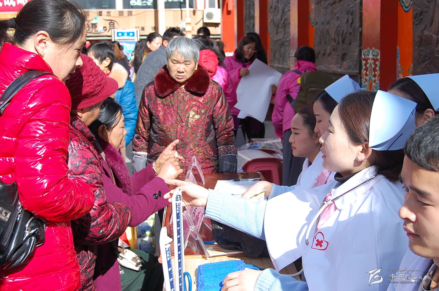 相關(guān)部門在情歌廣場(chǎng)周圍擺放了大量宣傳資料,州(市)法院、檢察院、公安、司法和巾幗維權(quán)律師服務(wù)團(tuán)成員為大家提供了相關(guān)法律法規(guī)咨詢,州人社局等部門向廣大群眾宣傳了州委“精準(zhǔn)扶貧”等惠民政策?;顒?dòng)現(xiàn)場(chǎng)共發(fā)放宣傳資料兩萬余份,對(duì)800余名群眾進(jìn)行了義診義檢。圖為州醫(yī)院、康定市醫(yī)院對(duì)群眾進(jìn)行義診義檢。