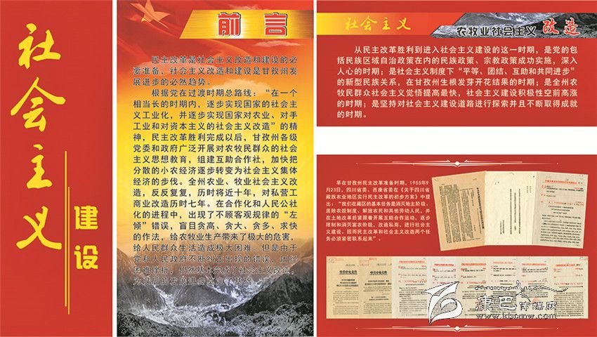《甘孜州檔案館愛(ài)國(guó)主義教育基地》的整個(gè)展覽分為四大板塊。第一部分命名為“自治政權(quán)的建立”,向參觀者介紹了甘孜藏族自治州誕生的歷史過(guò)程;第二部分是“民主改革運(yùn)動(dòng)”,把人們帶回了那段不能忘記的烽火歲月;第三部分是“社會(huì)主義建設(shè)”,深情地回顧了在建設(shè)社會(huì)主義事業(yè)中我州所取得的不平凡的成就;第四部分是“改革開(kāi)放”,讓人們重溫了在改革開(kāi)放的大潮中所經(jīng)歷的那些充滿(mǎn)激情的經(jīng)歷。