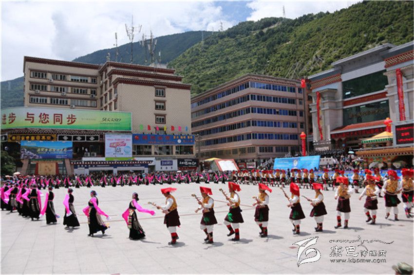 表演在巴塘縣舞之中拉開帷幕,上百名身著盛裝的男女演員用歡快的舞步、飄揚的云袖向康定市民和四方來客展現(xiàn)了“弦子之鄉(xiāng)”的淳樸熱情和如畫風光。演員們精彩、投入的表演贏得了現(xiàn)場觀眾的陣陣好評。分別表演完各自的縣舞之后,三縣人馬一同跳起了甘孜州州舞,在熟悉的《康定情歌》旋律之中,男男女女、老老少少300余人盡情舞蹈,時而大步流星、時而小心翼翼、時而熱情奔放、時而掩面含羞,黑白、紅黃、藍綠各色服裝隨著音樂節(jié)拍交相輝映,繪制成一幅團結(jié)友愛的和諧圖景。