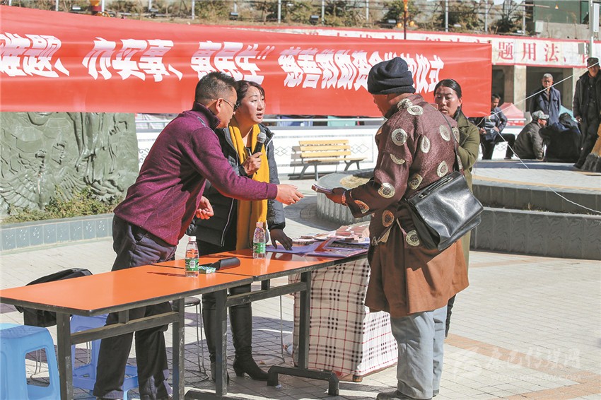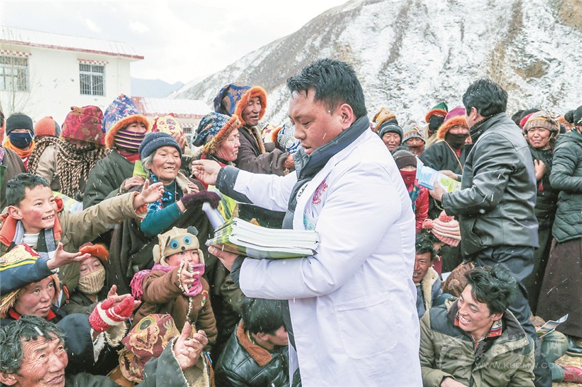 白玉縣集中開展了政策文化衛(wèi)生科技法律集中服務(wù)“五下鄉(xiāng)”活動(dòng),在嚴(yán)寒中為近2000名群眾送去了溫暖。活動(dòng)中,由省級宣講員松吉尼瑪帶隊(duì)的政策宣講組,用通俗易懂的“土話”、民間諺語,為群眾講解了脫貧攻堅(jiān)等政策。同時(shí),新組建的縣藝術(shù)團(tuán)送上了精彩的節(jié)目。由縣人民醫(yī)院、藏醫(yī)院等單位組成的“送衛(wèi)生”服務(wù)隊(duì)開展了現(xiàn)場義診活動(dòng),免費(fèi)為群眾提供醫(yī)療服務(wù)?!八涂萍肌焙汀八头伞狈?wù)隊(duì)進(jìn)行了科普和法律服務(wù),獲得到場群眾的由衷點(diǎn)贊。
