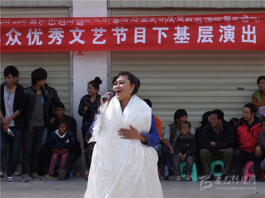 “2013年康巴兒女頌黨恩——甘孜州群眾優(yōu)秀文藝節(jié)目赴基層演出”活動相繼在稻城、得榮、鄉(xiāng)城、瀘定展開。3月的稻城,氣候依然寒冷,特別是稻城亞丁機場,這里海拔高,氣候惡劣,天氣變化莫測,對于格桑志瑪來講,到海拔4410米的地方演唱,是一個很大的挑戰(zhàn)。盡管如此,她希望通過自己熱情的演唱,能給建設(shè)者送去一絲溫暖。