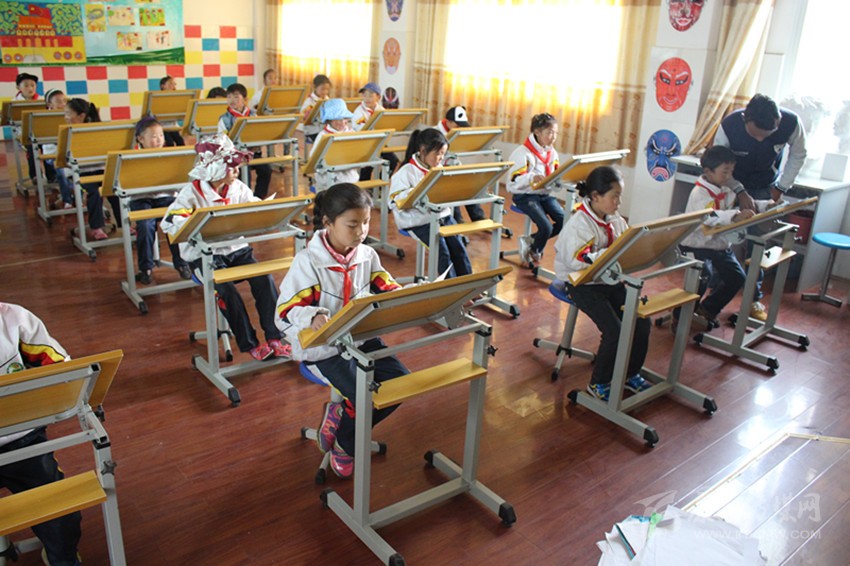 色達小學生正在上美術課。