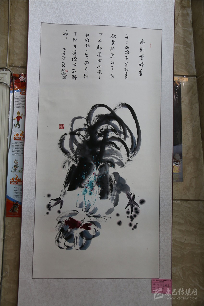 “‘松潔鶴鳴’是我親筆所繪,畫中‘松潔’表現(xiàn)的是黨員干部廉潔自律、風(fēng)清氣正的一種政治生態(tài)環(huán)境;‘鶴鳴’表現(xiàn)的是警鐘長鳴,時(shí)時(shí)刻刻向黨員干部敲敲‘鐘’。”州老年大學(xué)書法班今年70歲的胡鄧珠指作書畫作品興奮地說。