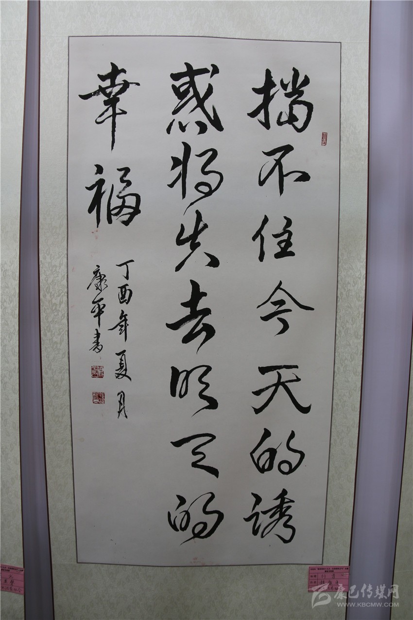 本網(wǎng)訊(記者 宋志勇 文/圖)“儉修德,善養(yǎng)心;公生明,廉正身?!薄爱?dāng)不住今天的誘惑將失去明天的幸福。”“清廉”..........。隸書、行草、草書等一幅幅書法作品行云流水、飛揚(yáng)灑脫。這是9月15日,由州紀(jì)委、州委宣傳部共同主辦,州直工委、州文明辦協(xié)辦的我州“喜迎黨的十九大?弘揚(yáng)清風(fēng)正氣”主題廉政書畫展在康定劇場開展時(shí),參與此次活動的作者以各自的方式創(chuàng)作出一件件主題鮮明的精美力作,既增強(qiáng)全社會反腐倡廉意識,也營造各族人民喜迎黨的十九大的濃厚氛圍。