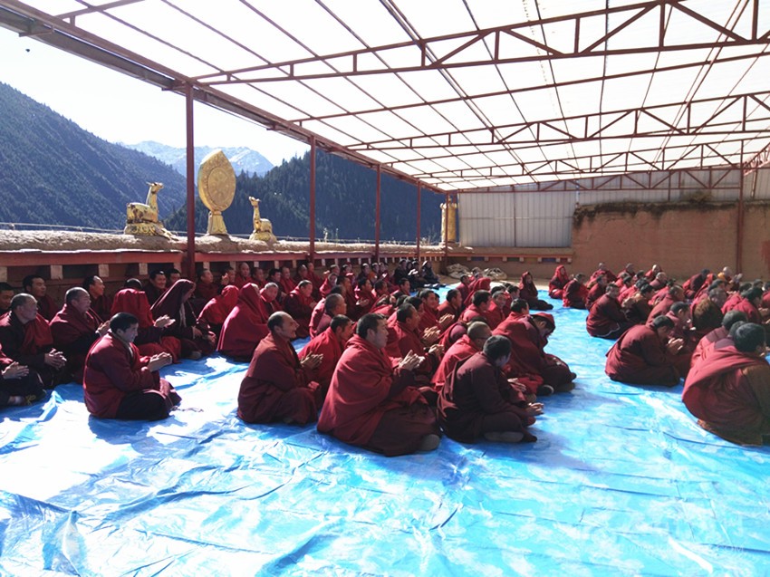 聆聽宣講的僧人。 德格縣委中心報道組 攝