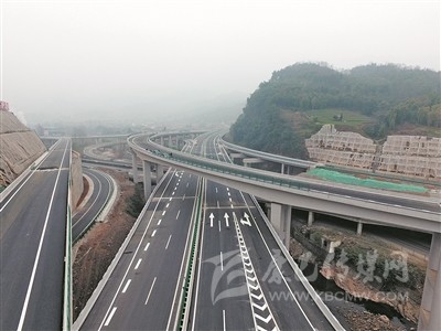 道路兩旁山嶺逶迤,觸目所見的高速公路,幾乎全都搭建在山腰帶際之間,如同蒼山綠水上的一條“彩練”。山河與路橋隧的錯(cuò)落有致,車上的人便更有一種與藍(lán)天白云的距離越來越近的錯(cuò)覺。沿線綠化因地制宜,打造水體山體景觀,“車在路上行,路在景中生,人在畫中游”的美感油然而生。